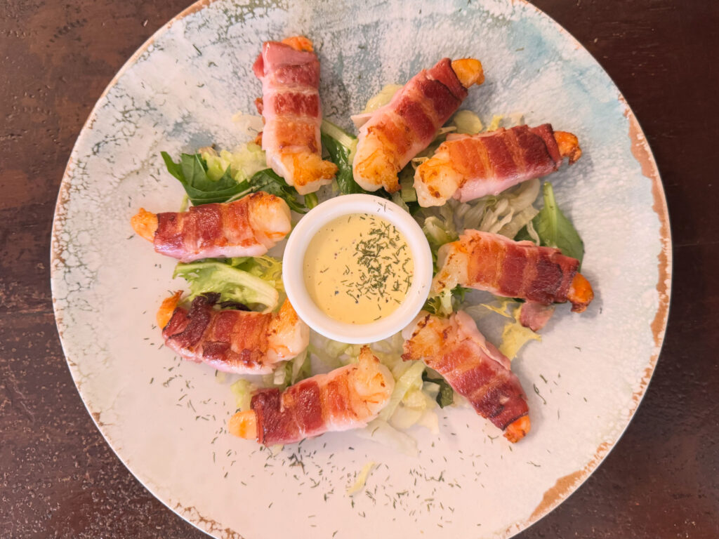 Langostinos con beicon y salsa de mostaza – 17,50€ / 8,90€